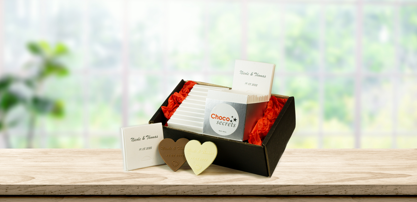 ConfigureMake your big day even more unforgettable by giving your valuable guests personalized chocolate gifts! Not only are they attractive and unique, but they also express your connection and love in the details. Create a sweet atmosphere and ensure that everyone involved has a special experience. These gifts are guaranteed to make an impression and make the day even more special.