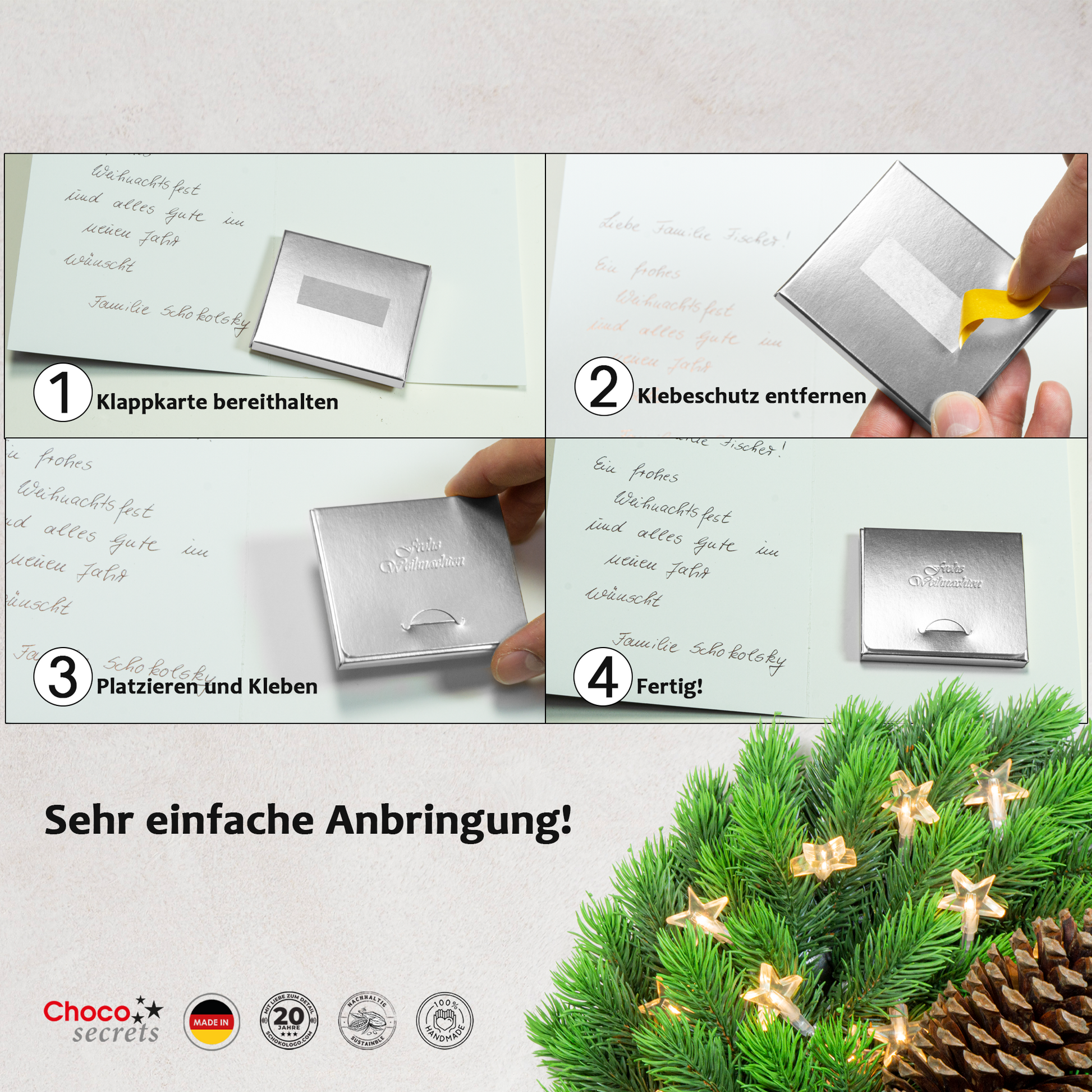 - 5 tarjetas de felicitación de Navidad que incluyen barras de chocolate y sobres.